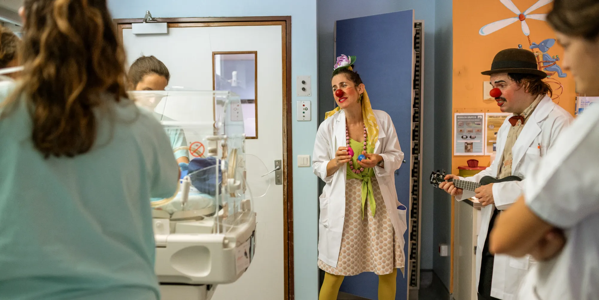 O ambiente hospitalar é especialmente desafiante para uma criança, afetando o seu bem-estar e a sua recuperação. Por acreditamos na importância da alegria, da leveza e da conexão humana, pilares da atuação dos nossos Doutores Palhaços, é com orgulho que vemos o nosso trabalho ser cada vez mais reconhecido por centros de estudo e projetos de investigação científica. Contamos com uma equipa profissional de artistas, com formação especializada para atuar em contexto clínico, e realizamos visitas regulares a hospitais públicos em todo o país, em estreita colaboração com os serviços de pediatria. A presença dos Doutores Palhaços contribui para a humanização dos cuidados de saúde, ajudando a reduzir o stress e a transformar o dia a dia de crianças, famílias e profissionais de saúde. Com o humor, reforçamos a ideia de que o hospital pode e deve ser um espaço de cuidado integral, onde o bem-estar e a saúde emocional são valorizados como parte essencial do processo de tratamento.